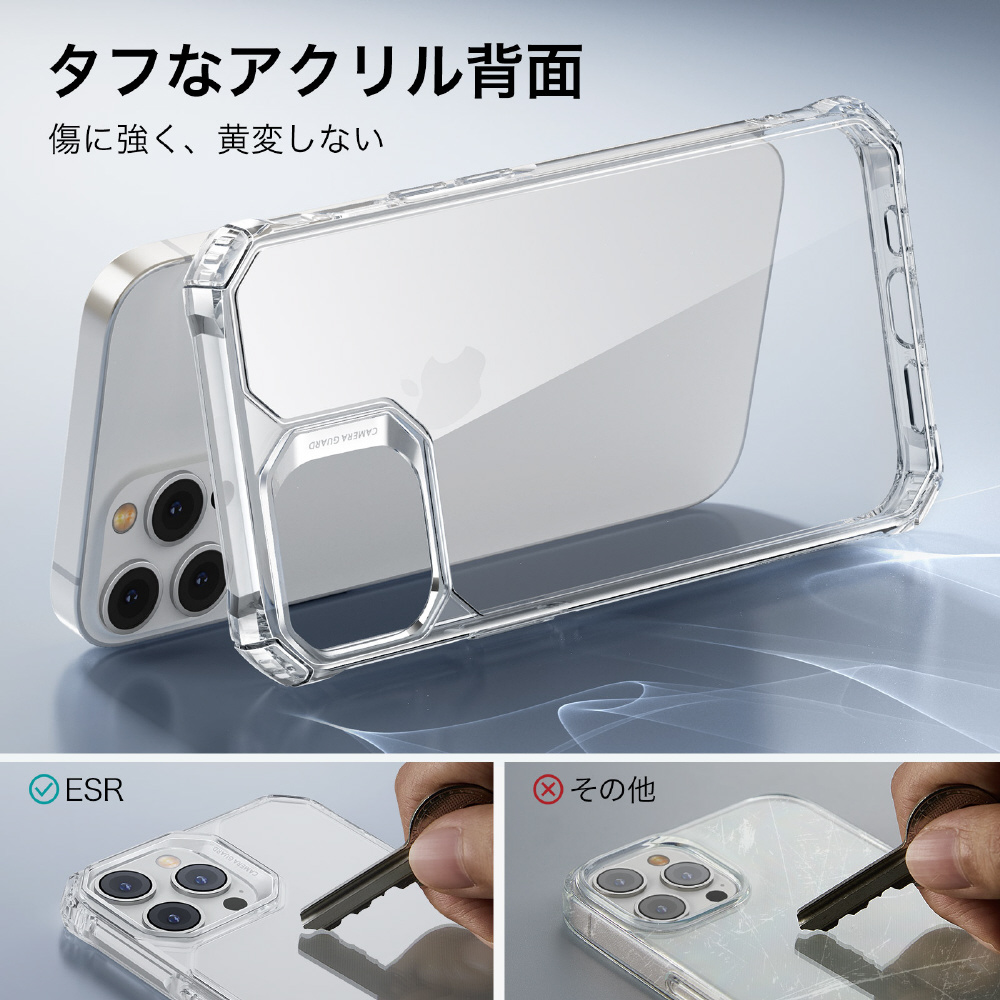 頑丈なアクリル背面は傷がつきにくく、黄変しないため、新品のような外観を保ち、iPhoneの本来のスタイルをより長く維持します。