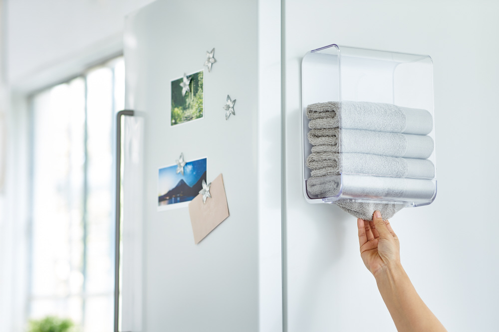 ・冷蔵庫や洗濯機などの側面に取り付ければタオルがサッと取り出せます。