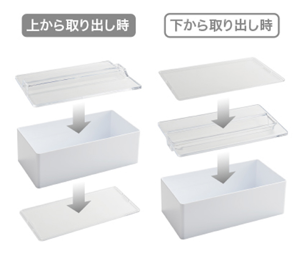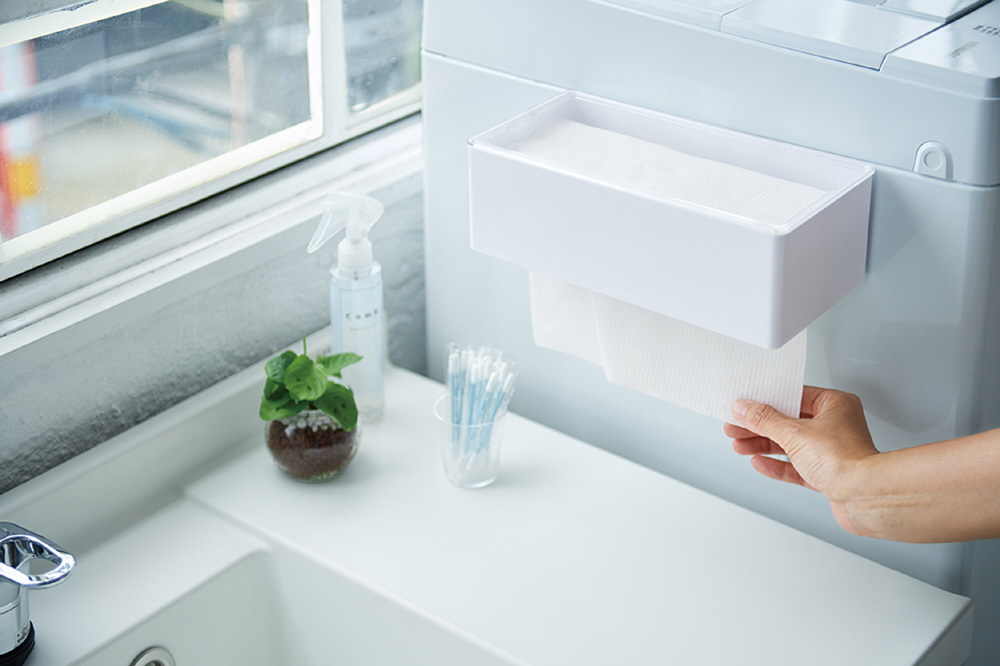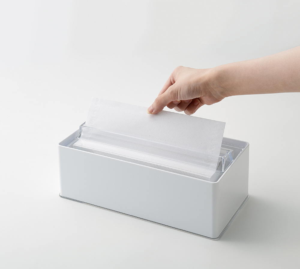 ・ペーパータオルを下から取り出すことにより手に着いた水滴が製品につきません。