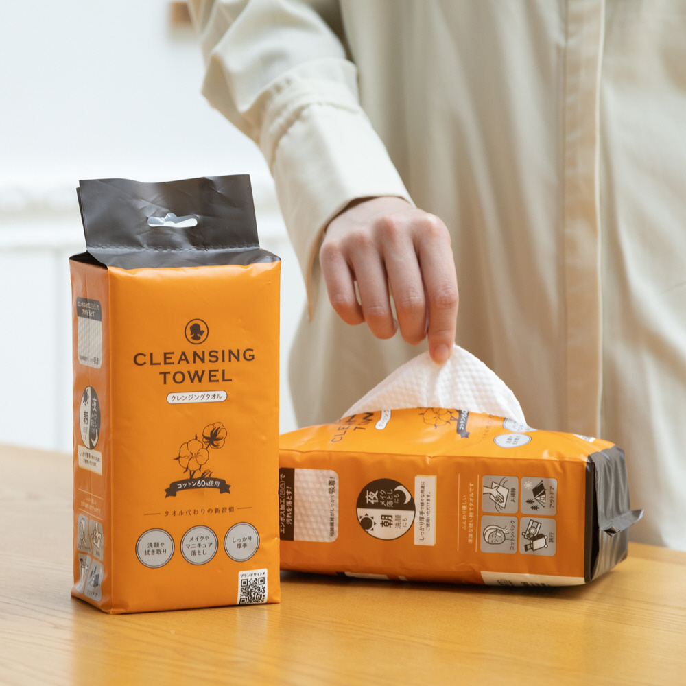 コットン60%の、ふんわり優しい使い捨てタオルです。