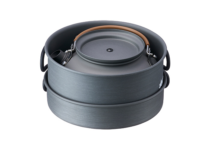 便利な湯切り機能付き!ケトルがピッタリ収まる1人〜2人向けクッカーセット。
