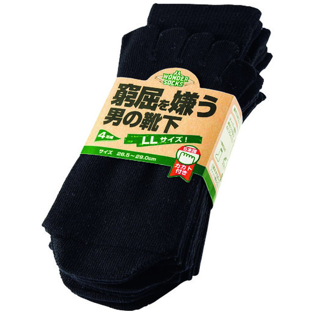 ユニワールド 窮屈を嫌うLLサイズの男の靴下 5本指カカト付 ブラック 4足組 WS-9455