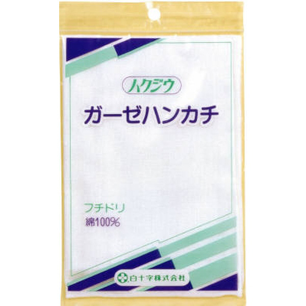 ハクジウ ガーゼハンカチ フチドリ シロ 1枚
