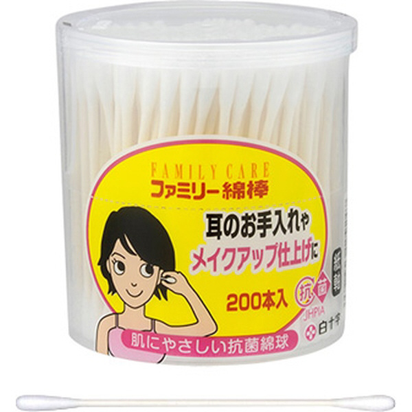 円筒ケースに入った、紙軸タイプの綿棒です。お風呂上りや水泳の後の耳のお手入れや、細かい部分の清掃、塗布に便利にご使用いただけます。200本入り。