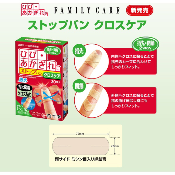 指先、関節のひび・あかぎれを守る、クロス密着型の救急絆創膏