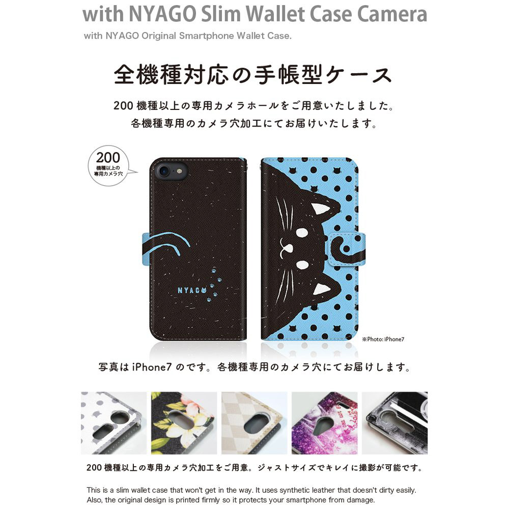 with NYAGOはお洒落でかわいい人気の猫デザインブランド。かさばらないスリム手帳型ケース。