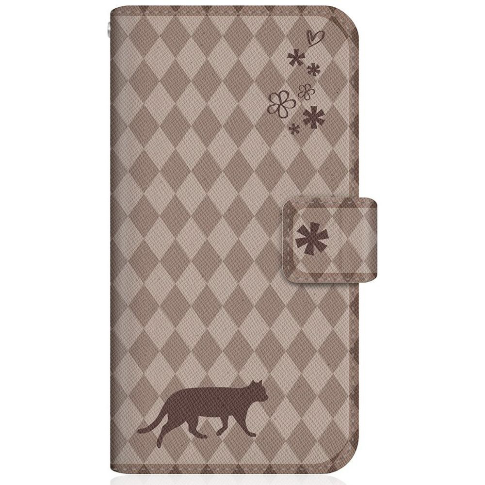 NYAGO G5NZ6 スリム手帳型ケース NYAGO ノート フレンチ フラワー ダイアリー キャット シルエット ダイヤ柄 & てくてくお散歩だにゃん