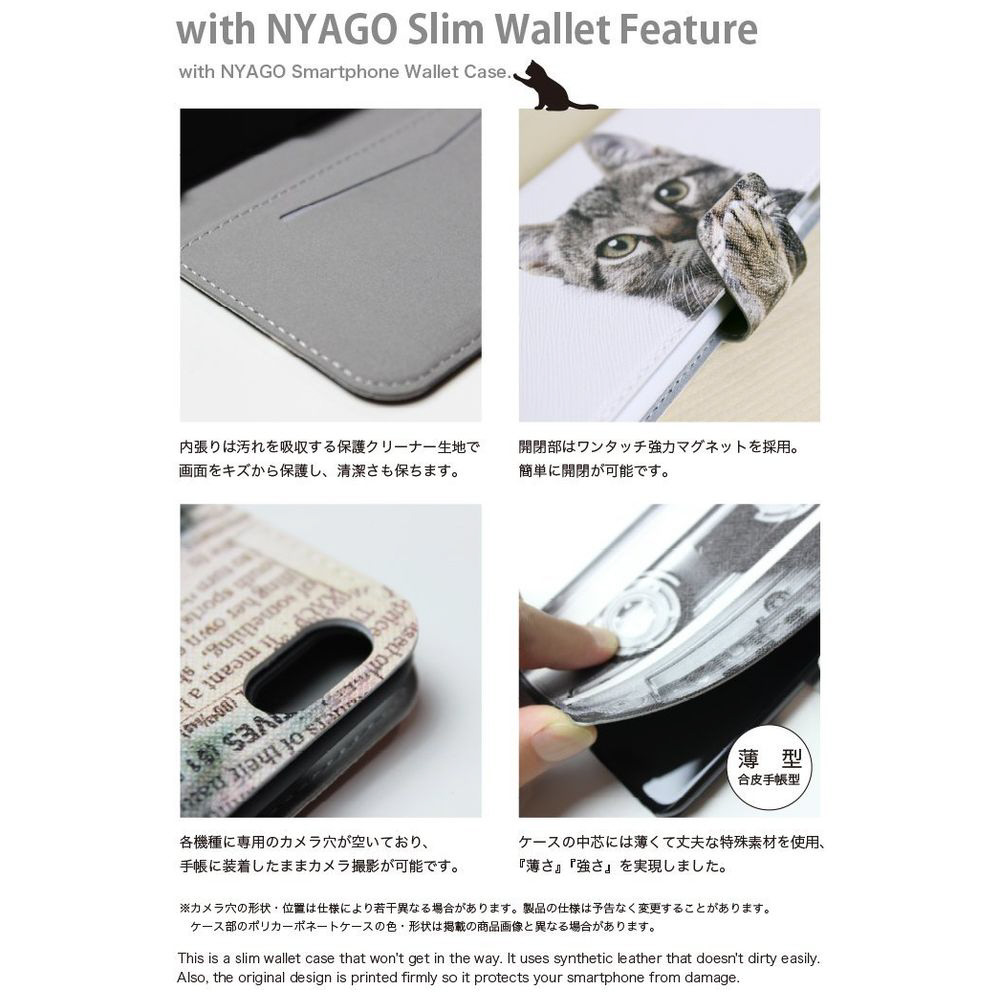 with NYAGOはお洒落でかわいい人気の猫デザインブランド。かさばらないスリム手帳型ケース。