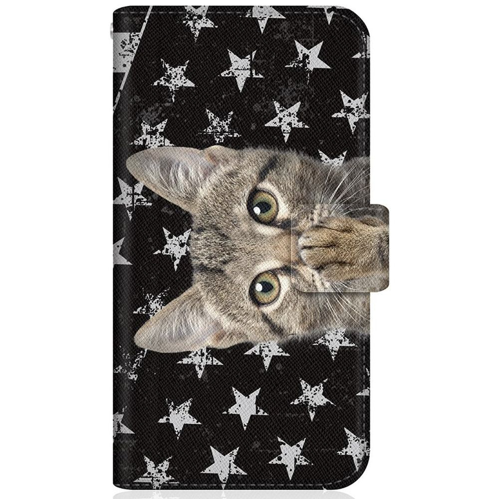 NYAGO SCV46 スリム手帳型ケース NYAGO ノート キュート 肉球をペロペロするにゃ〜。 - にゃんとも アメリカン だにゃ〜。 - 星条旗柄