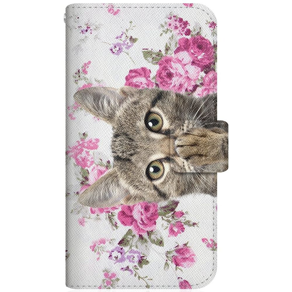 NYAGO SCV46 スリム手帳型ケース NYAGO ノート キュート 肉球をペロペロするにゃ〜。 サマー フラワー だにゃ〜。