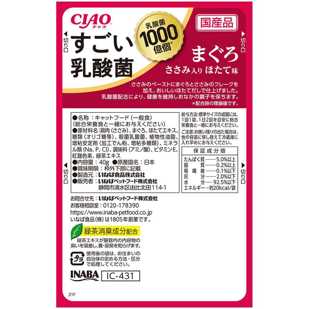 CIAO(チャオ)すごい乳酸菌パウチ まぐろ ささみ入り ほたて味 40g