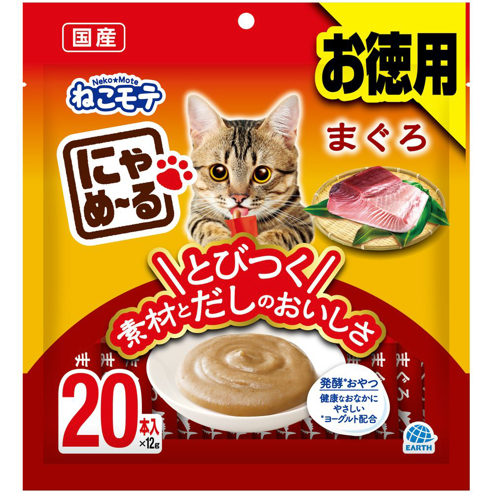 まぐろそのものの味をしっかり味わえる液状おやつ。素材の味を引き立て、うま味と香りが広がるだし入りだから、一度にゃめたらとまらないおいしさ。健康なおなかにやさしい発酵食「ヨーグルト」を配合。