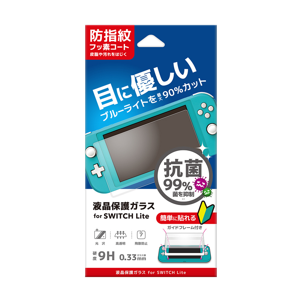 液晶保護ガラス 貼付ガイドフレーム付 for SWITCH Lite ブル−ライト低減+抗菌