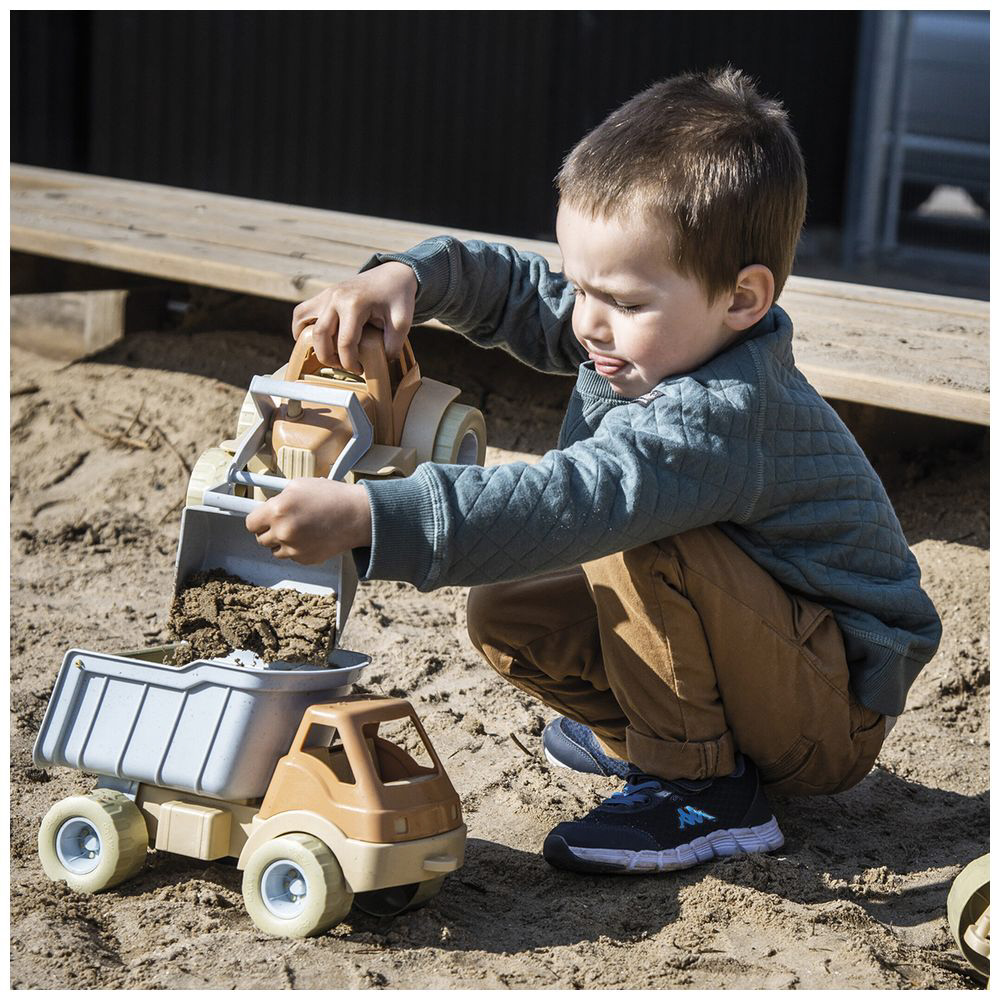 サイズも大きめで動かしやすく、プラスチック製で軽く小さな手で持ち運びやすいのが特長です。シャベルは手動で17cmまで持ち上がります。