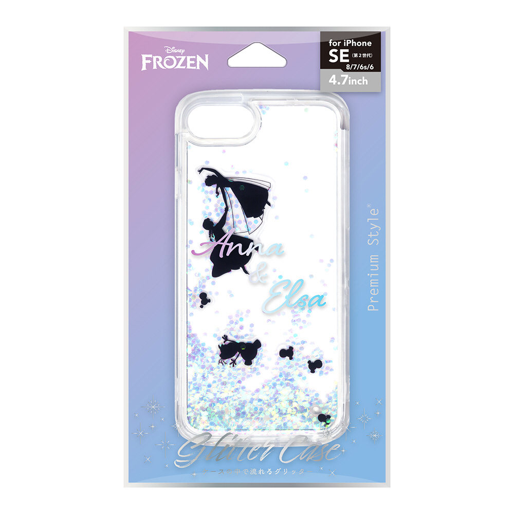 『アナと雪の女王』デザインのキラキラ輝くグリッター入りのiPhone SE/8/7/6s/6用グリッターケース