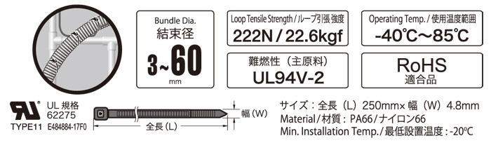 ワイドタイ 耐候性 250mm 50本入 黒 WLT-250W50BK