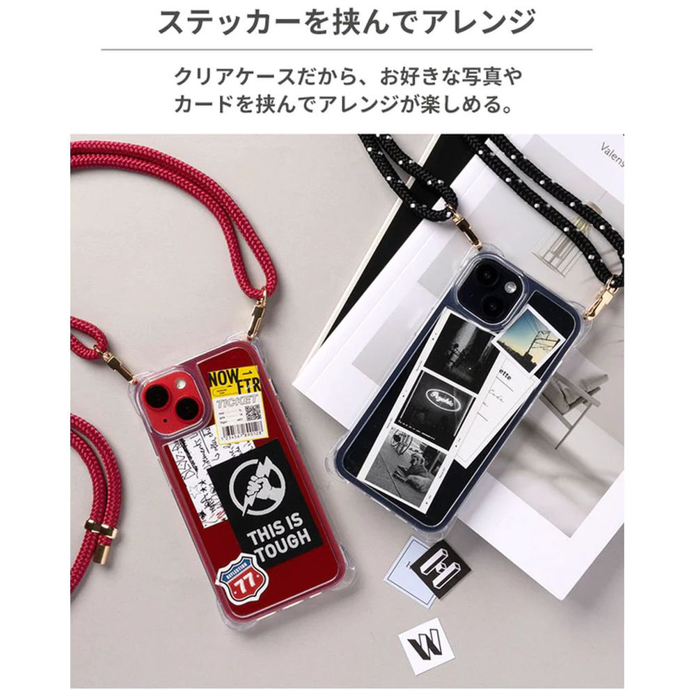 [iPhone 14 Pro専用]ULTRA FINE 4つ角ストラップホール付クリアケース ショルダーストラップ付き コットンキャンディピンク 661-053163