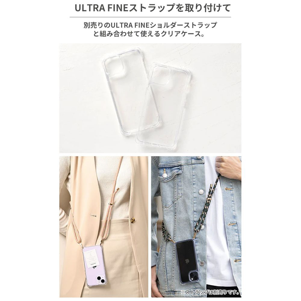 別売りのULTRA FINE(ウルトラファイン)のショルダーストラップを取り付けることができるクリアケースです。
