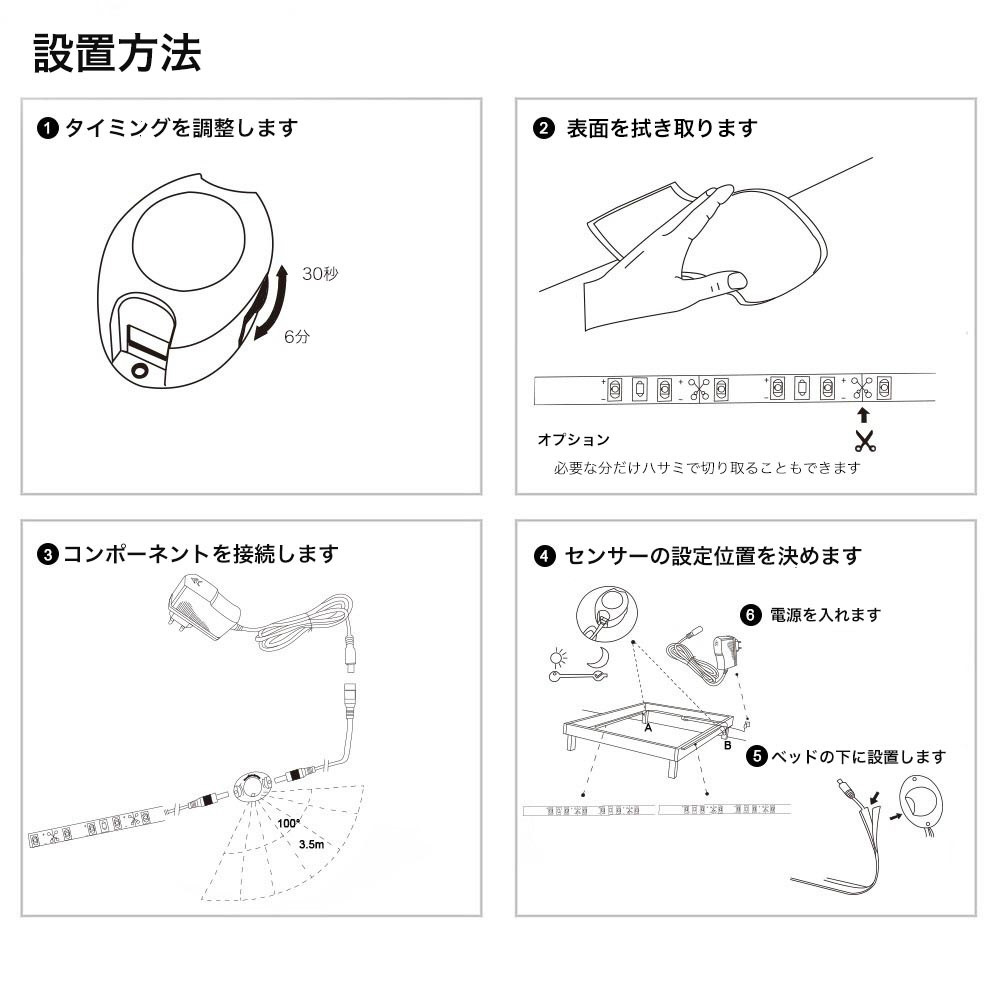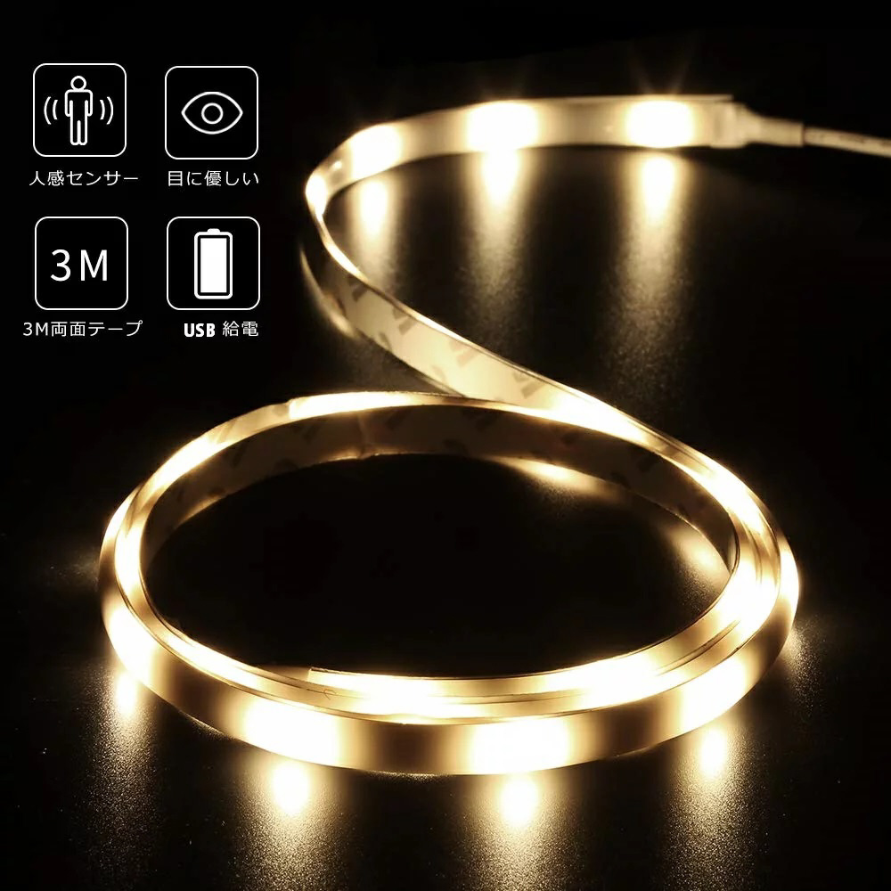 テープタイプの人感センサーライト、様々な用途で使える便利な商品です。