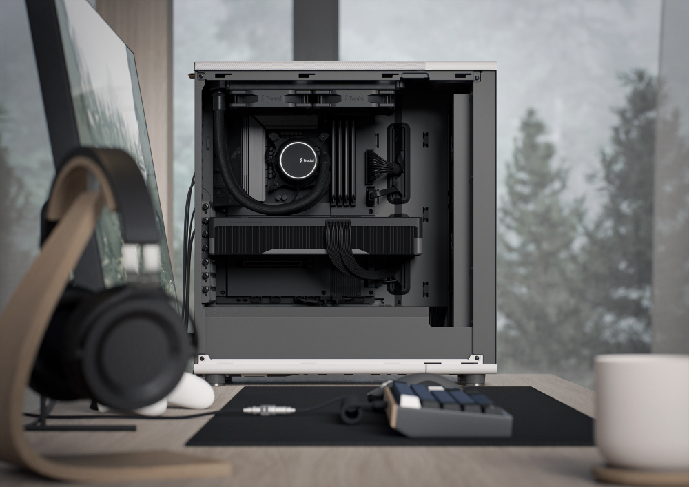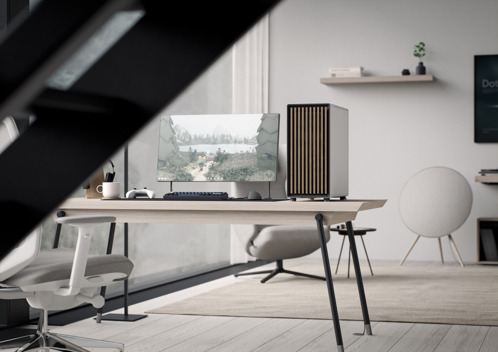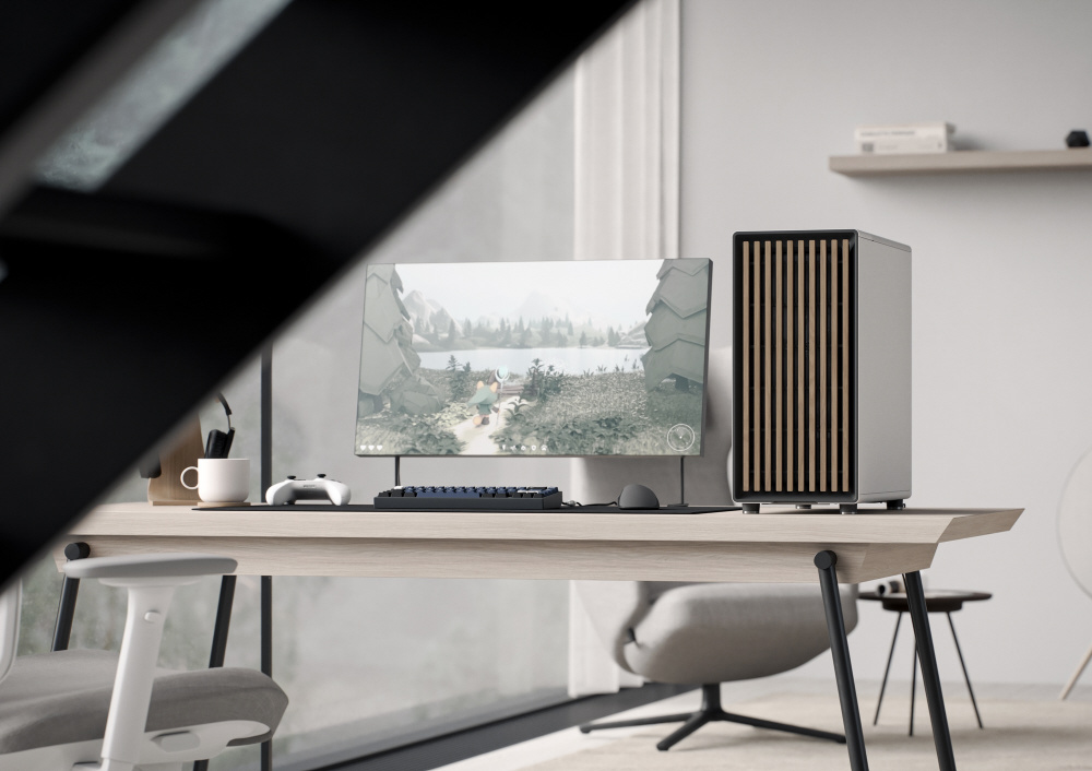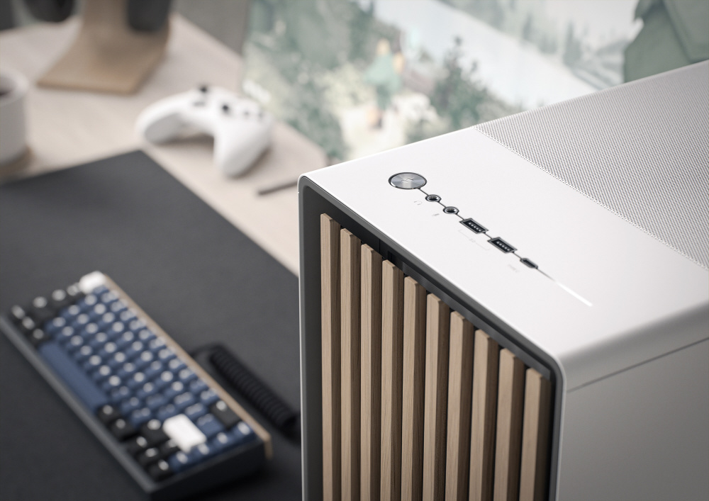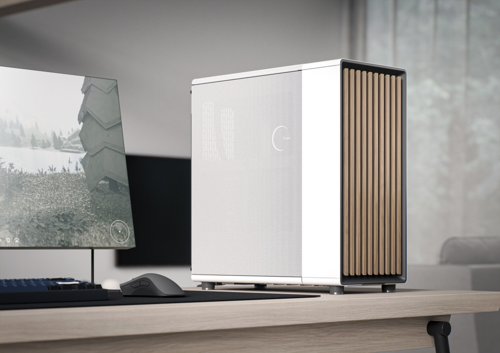 木材を使った洗練されたフロントデザイン。高いエアフローを実現するミドルタワー型PCケース