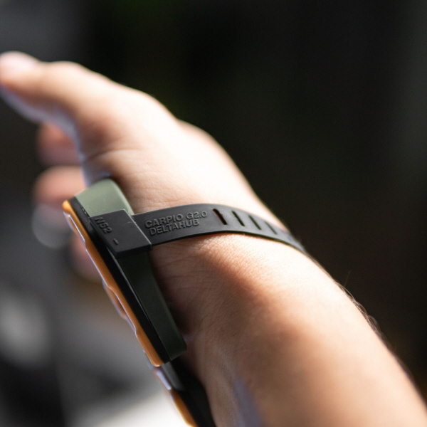 調整可能なシリコンストラップと磁石を用いた取付機構によって、Carpio G2.0は、様々な手の動きに追従することができます。