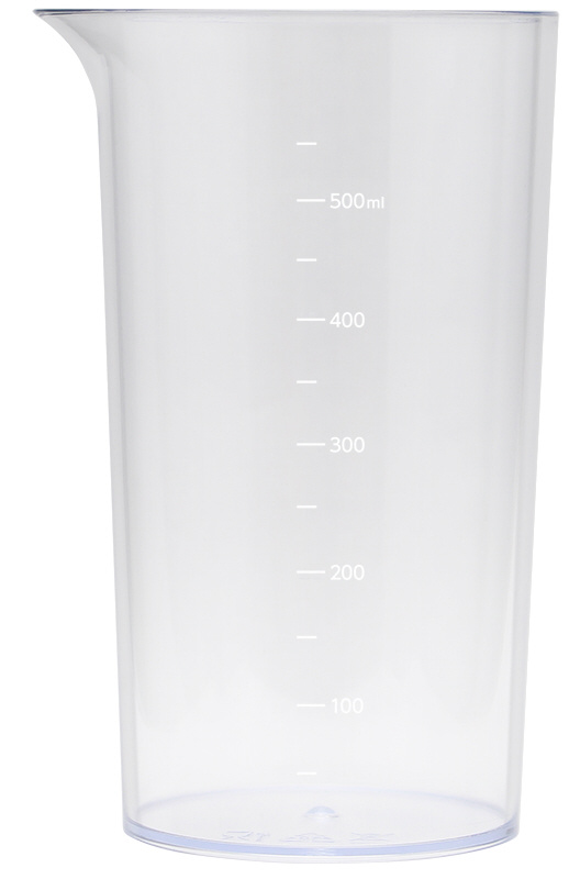 容器を傷つけにくいプラスチックガードと便利な目盛り付きカップ(約550ml)付き。