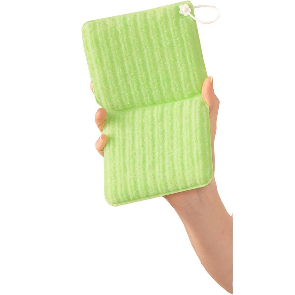 ・角が洗いやすいよう折り目がついています。2つ折りにしても使えます。
