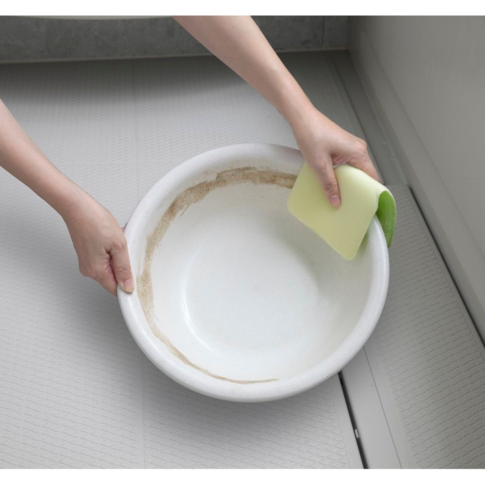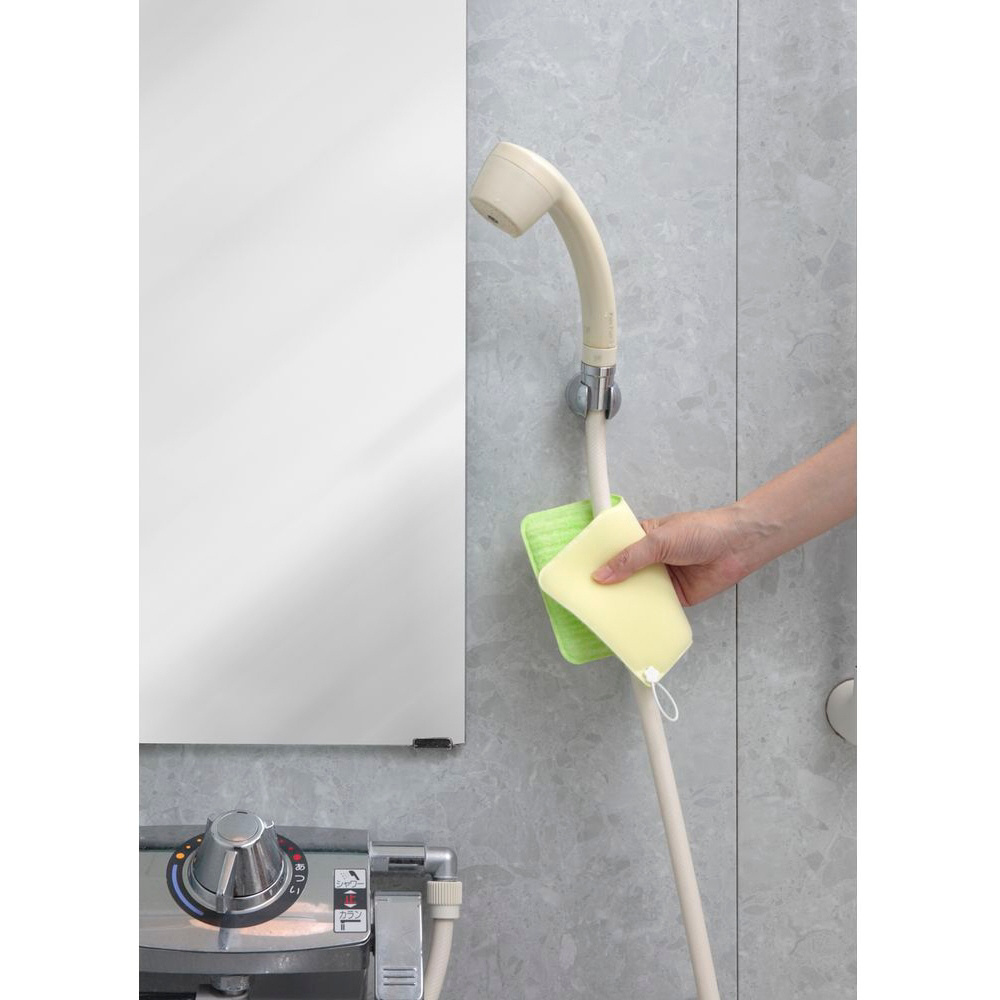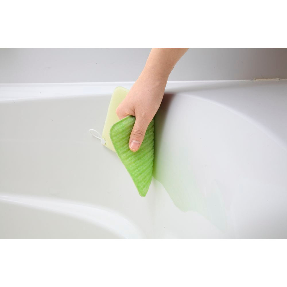 ・特殊形状の繊維で水だけでも湯アカなどの汚れを簡単にかき落とすことができます。