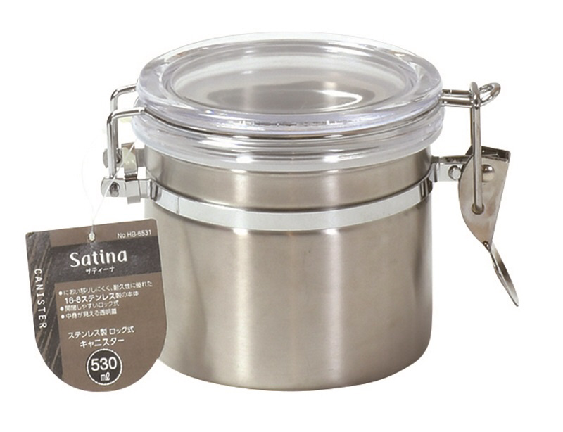 サティーナ ステンレス製ロック式キャニスター530ml HB-6531 [食洗器非対応]