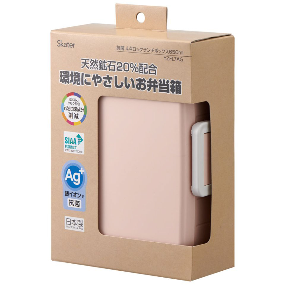 抗菌4点ロックランチ650ml くすみ ピンク YZFL7AG [食洗機対応/蓋以外電子レンジ対応]