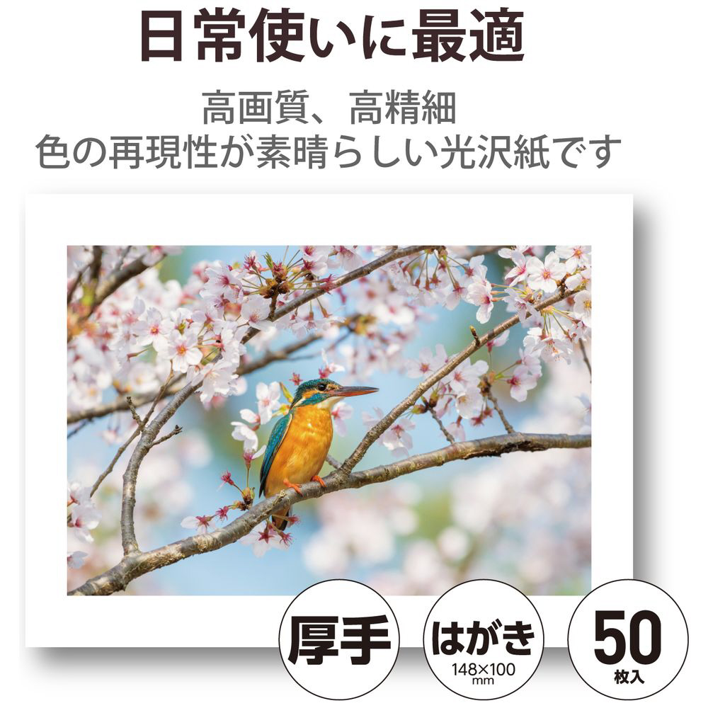 〔インクジェット〕写真用光沢紙 ハイクオリティ 厚手 0.23mm [はがきサイズ /50枚] ホワイト EJK-HQH50