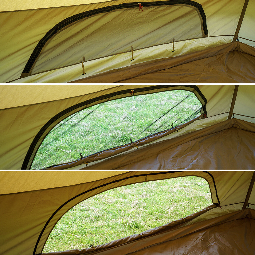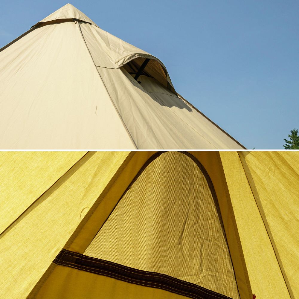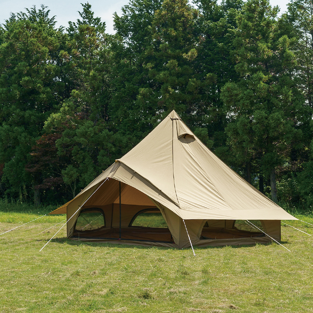 設営方法は変わらずシンプルな、モノポール+1フレーム。グランピング、大家族、仲間内でのキャンプなどなど、楽しみ方がさらに広がります。