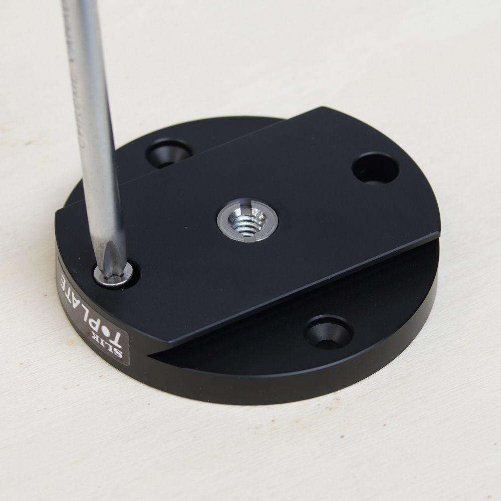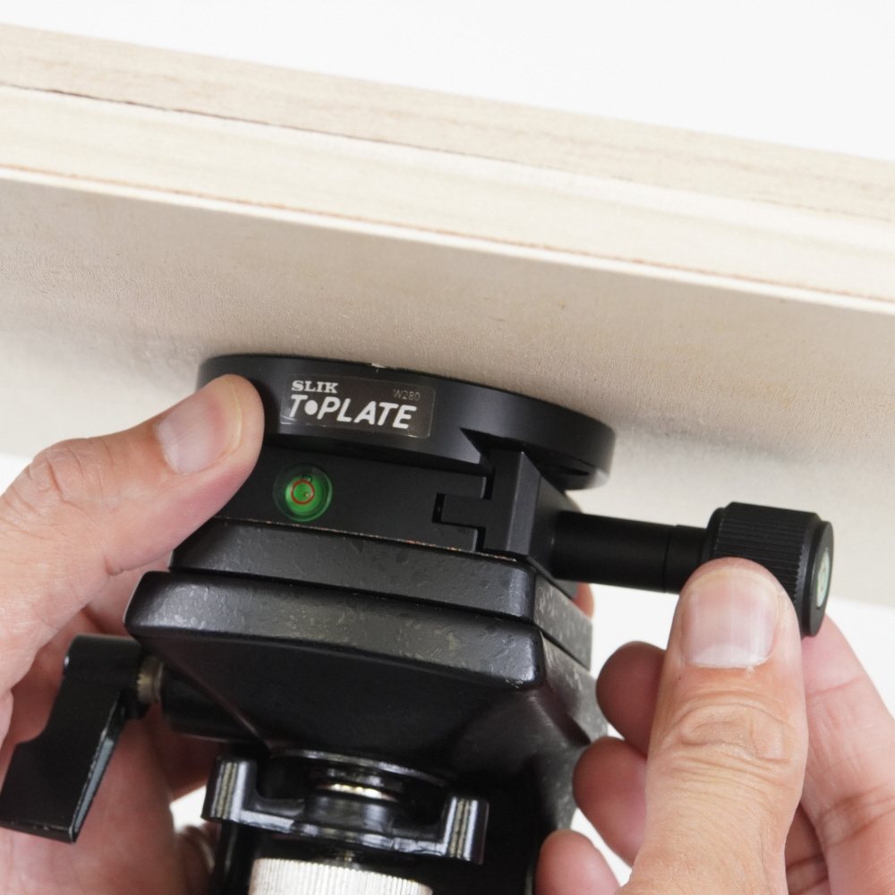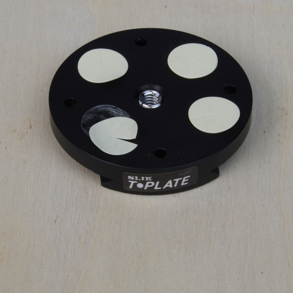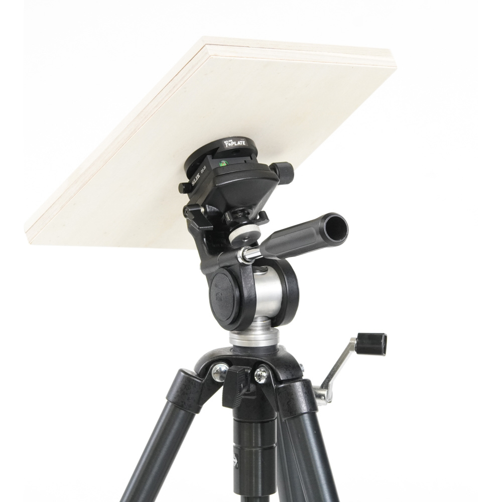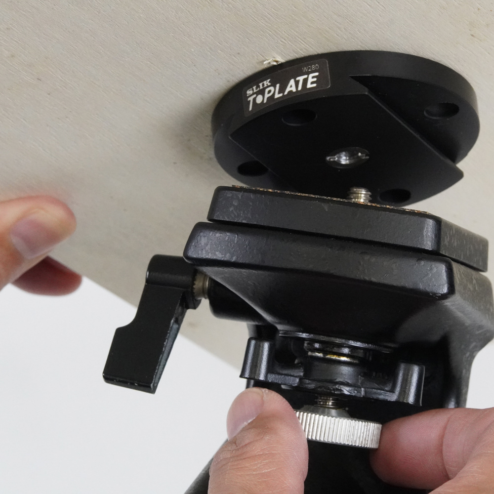 三脚に自作のテーブル板を載せられるアタッチメントプレートです。