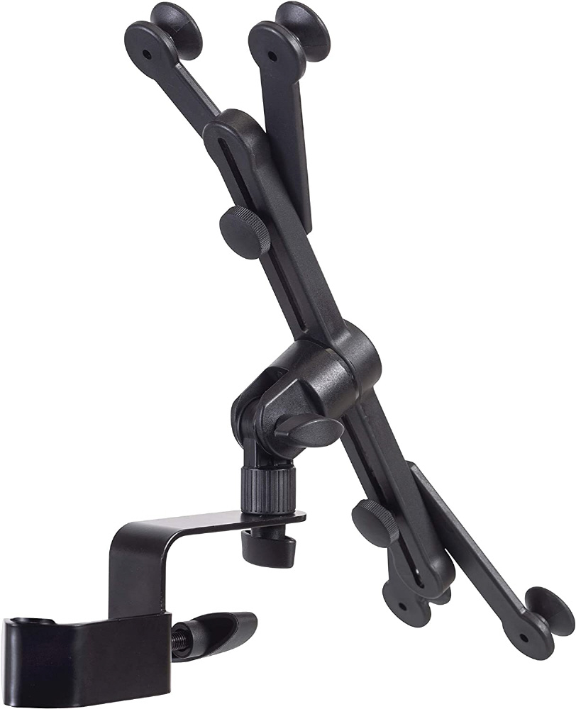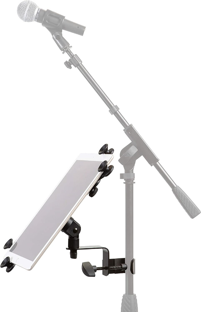 ・様々なサイズのタブレットやスマートフォンをマイクスタンドに固定できるホルダー