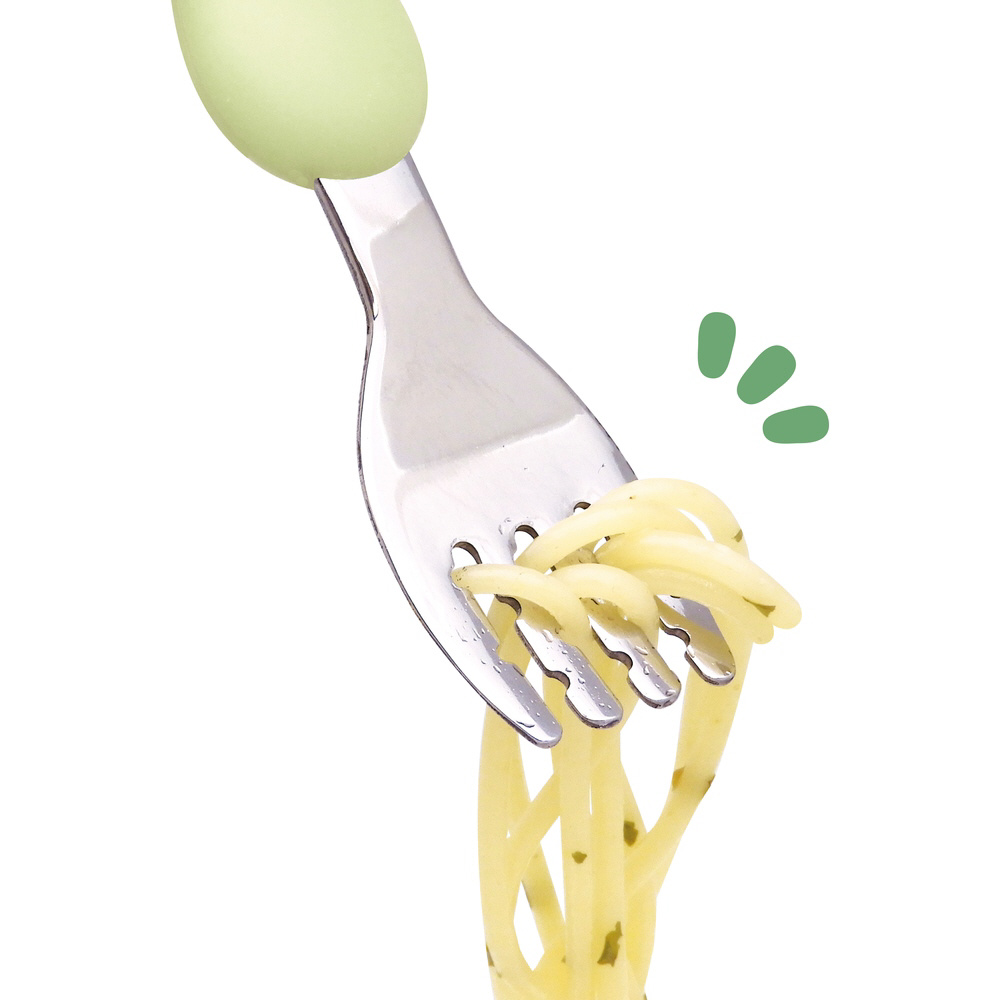 自分でパクパク、お子様の楽しいお食事の時間を、機能性が備わったフォーク&スプーンがサポートします。