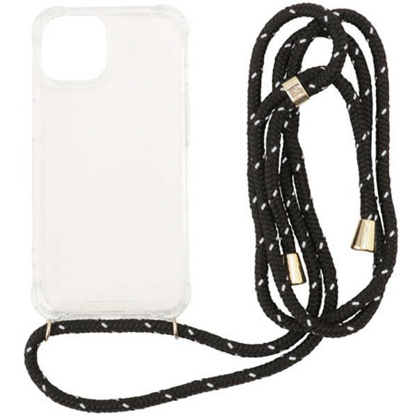 iPhone14 ネックショルダークリアケース ブラック QZC-1008BK
