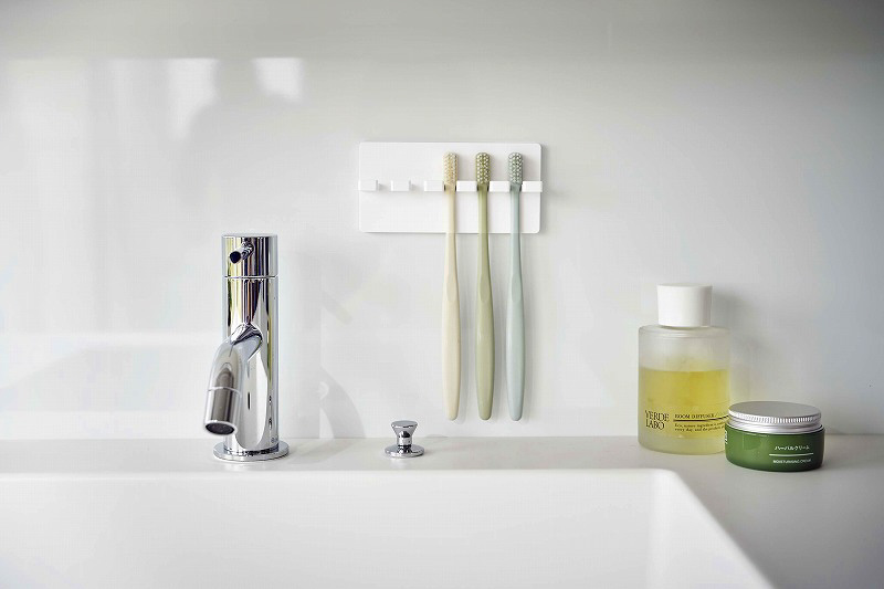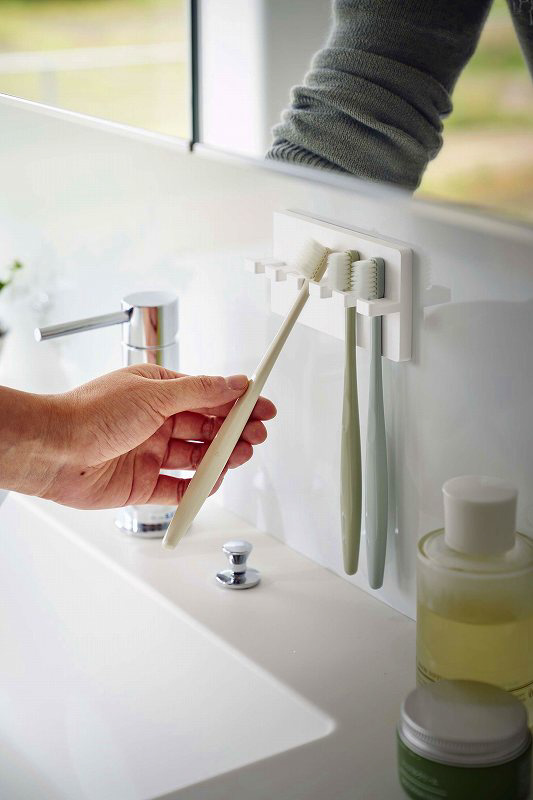 フィルムフックで好きな位置に簡単取り付けの歯ブラシホルダー。