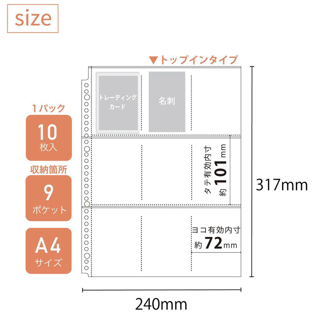 トップインタイプ。片面ポケット。トレーディングカードや名刺が入る。