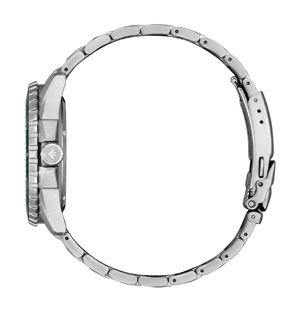 ■水中や暗い場所でも表示が見やすい夜光仕上げの針とインデックス、誤作動を防ぐ逆回転防止ベゼル、ねじロックりゅうずなど、ダイビング中の安全性を考慮した本格機能が充実しています。