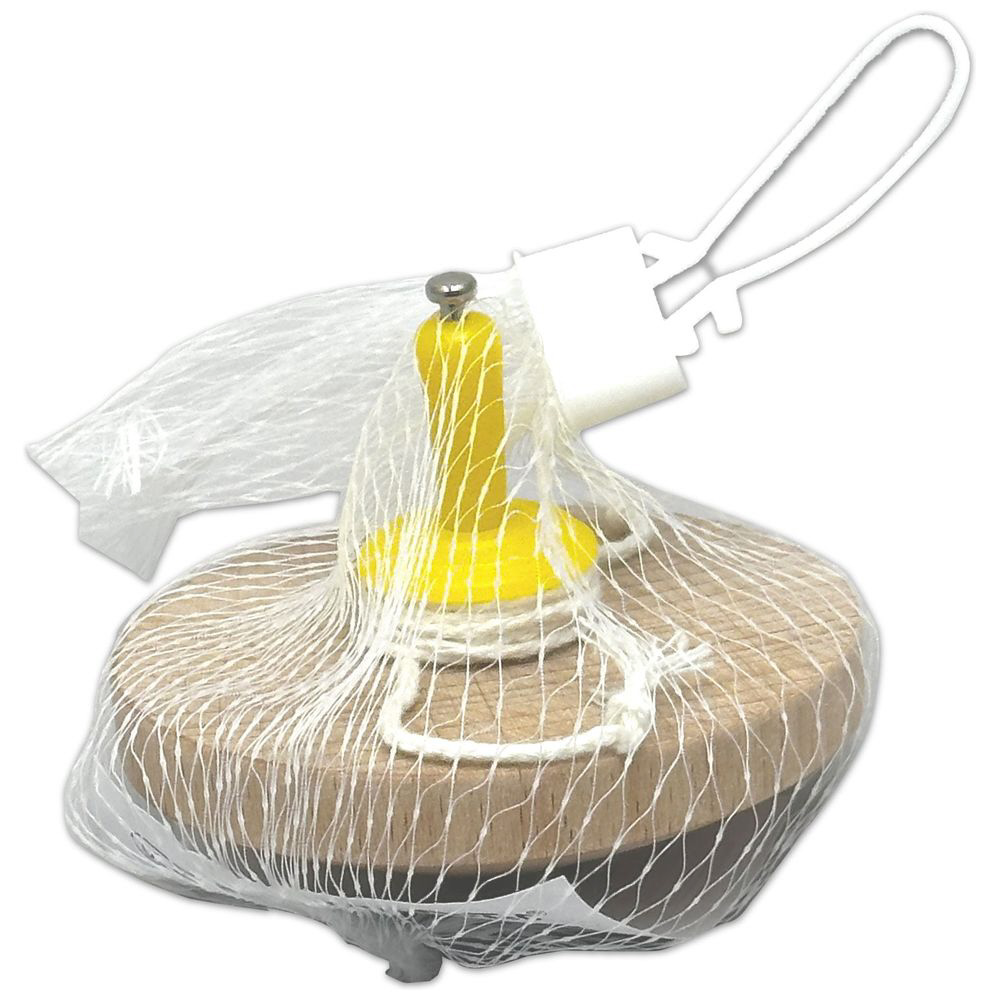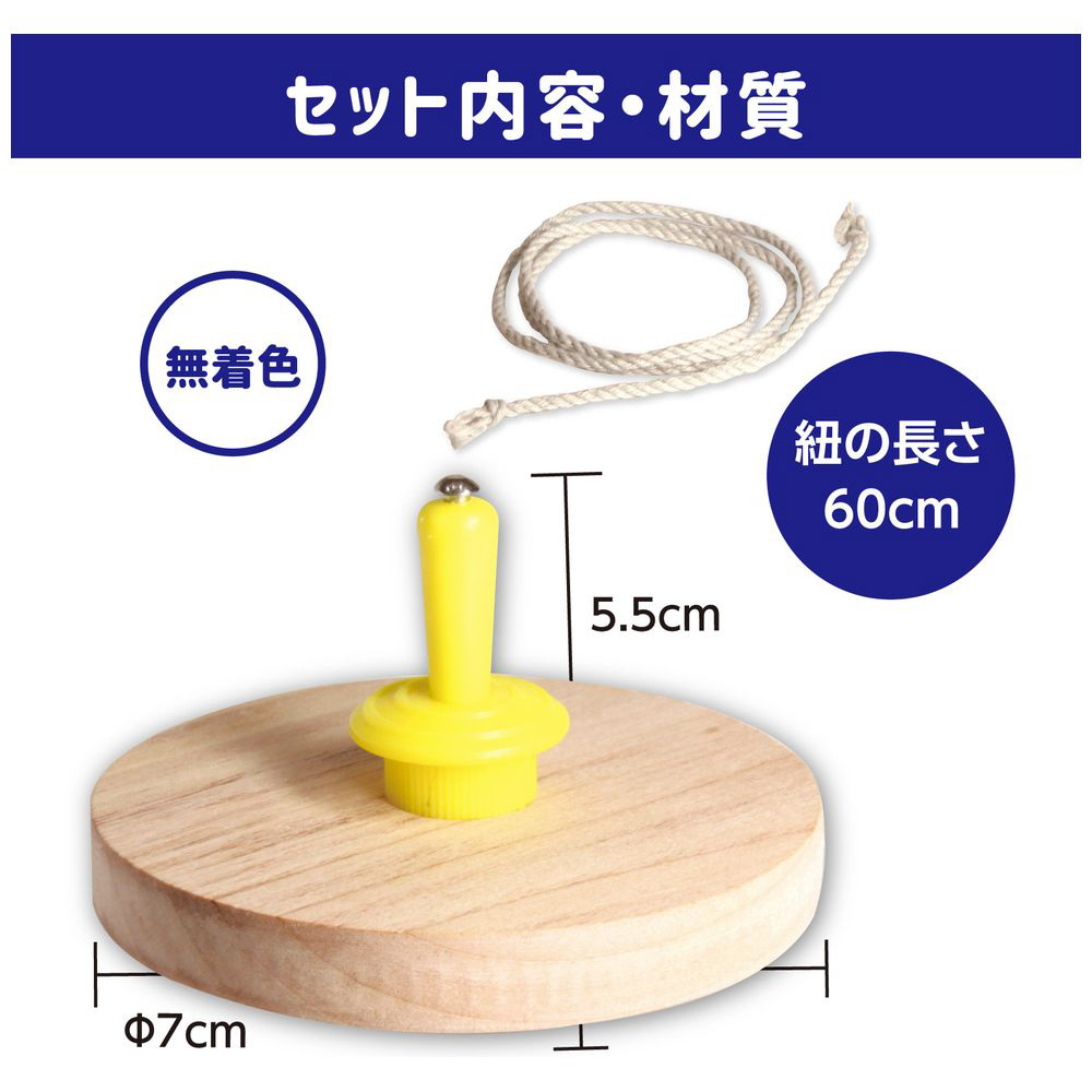 ひもを引くだけで簡単に回る木製コマです。