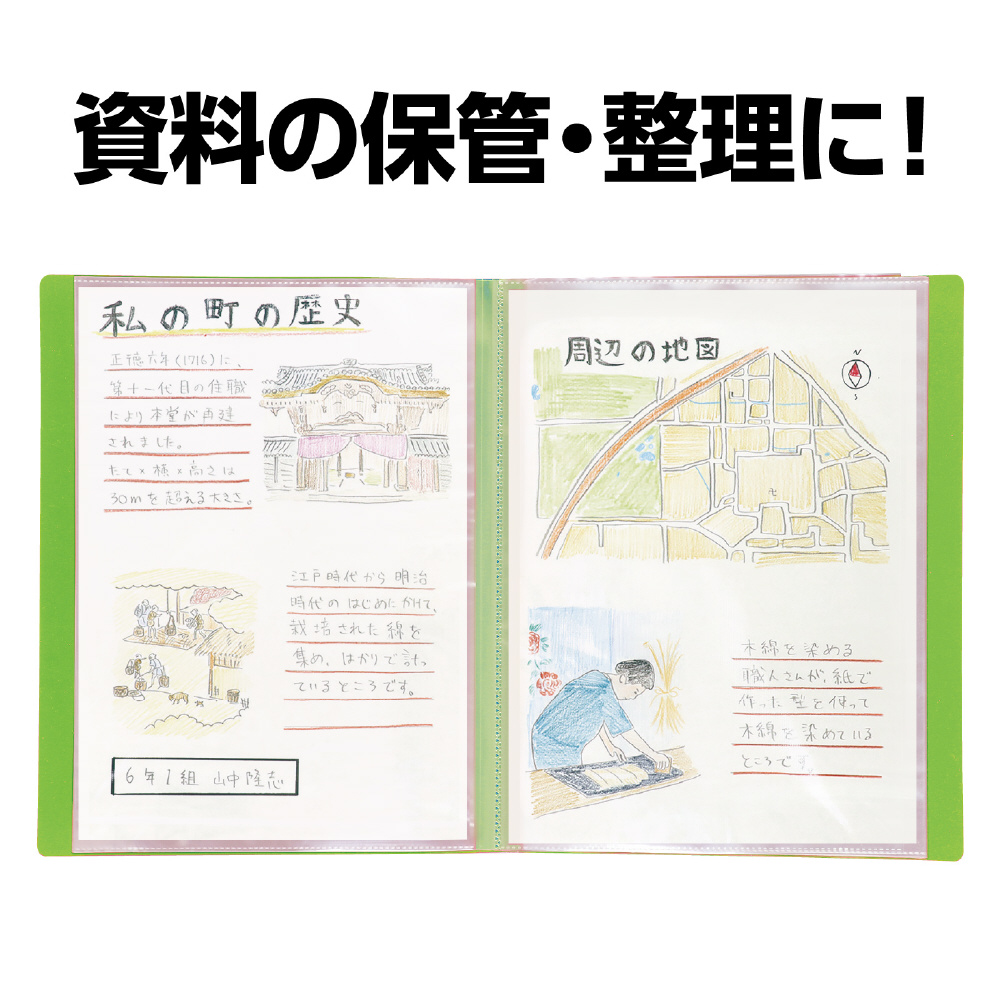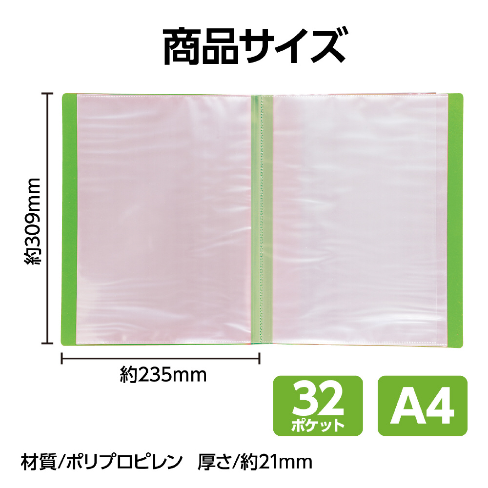 クリアブックA4 横入れ 32ポケット グリーン 5612