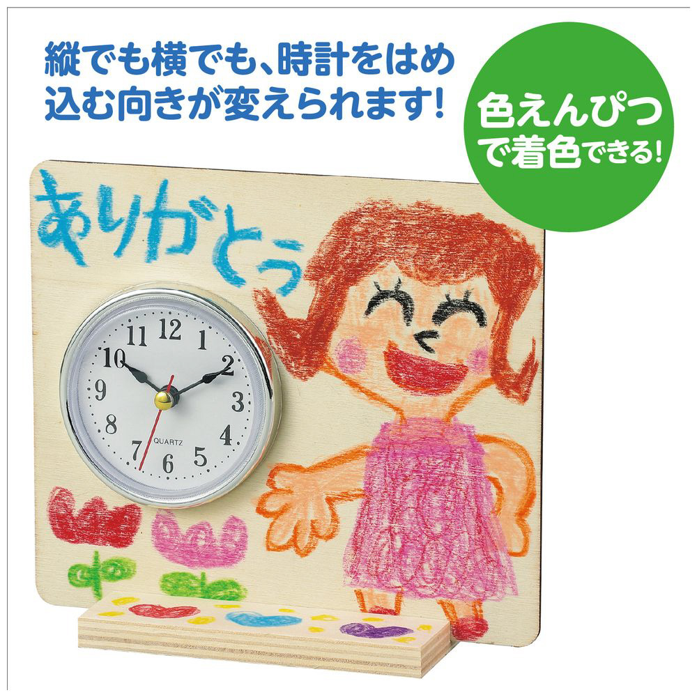 自分で絵をかいてオリジナルの時計をつくろう!色えんぴつで着色できる!電池付!