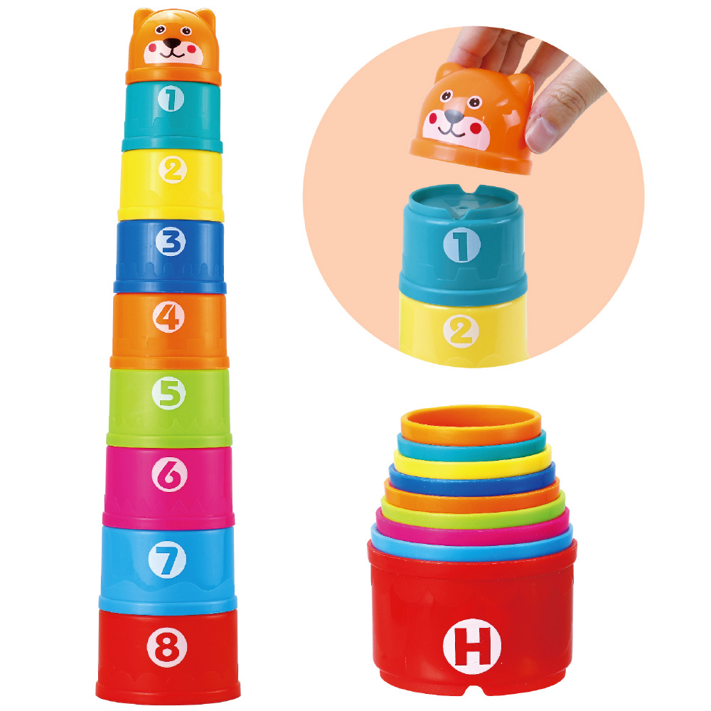 アルファベットと数字がかかれたコップを重ねる定番知育玩具!コンパクトに収納できる