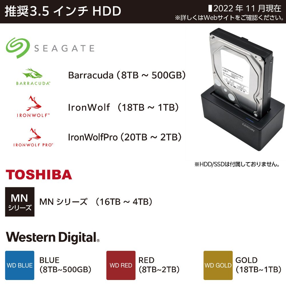※20TBまでのHDDで動作確認を行っております(2023年2月現在)。