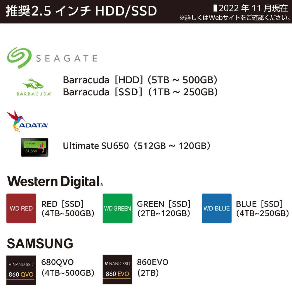<HDD>2.5インチまたは3.5インチのSATA HDD [SATA3.0〜1.0(6G〜1.5Gbps)]