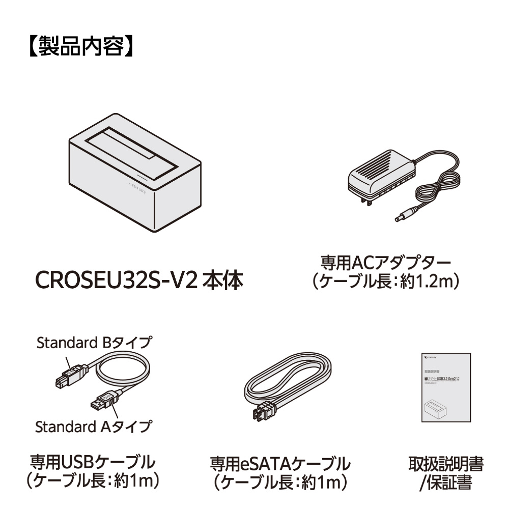 付属品 専用ACアダプター(ケーブル長:約1.2m)、専用eSATAケーブル(ケーブル長:1m)、専用USBケーブル Standard Aタイプ - Standard Bタイプ (ケーブル長:1m)、取扱説明書/保証書