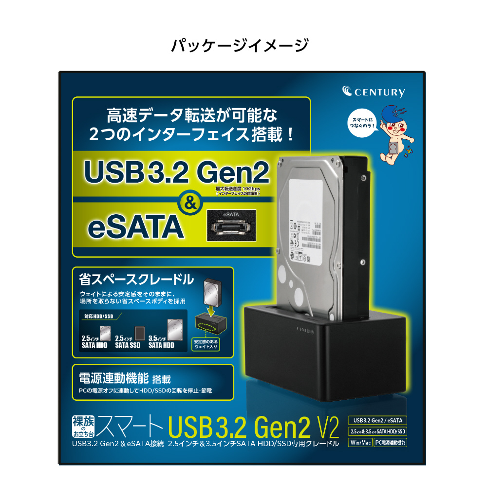 ■転送速度10Gbps(理論値)のUSB3.2 Gen2とeSATA、選べる2つのインターフェイス!