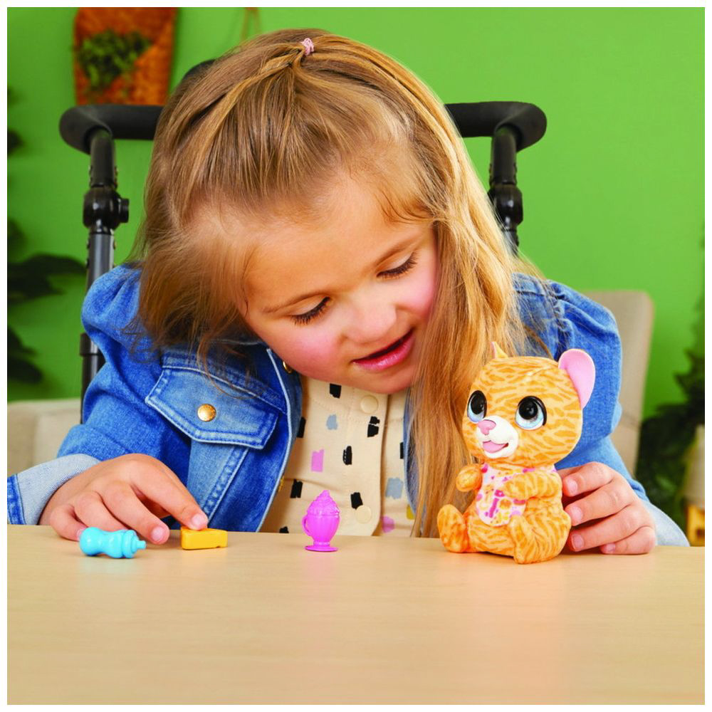4個のアクセサリーが付属していて、付属の哺乳びんやおやつをあげたり、鼻を押してこねこを安心させると、目を閉じてかわいい声で鳴きます。