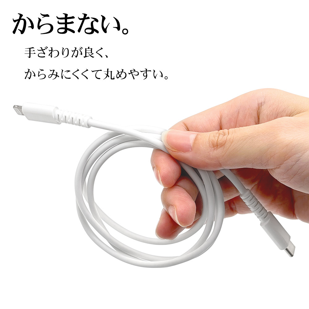 柔らかケーブル Type-C to Lightning PD対応 1.5m ホワイト R15CACL3A02WH [USB Power Delivery対応]