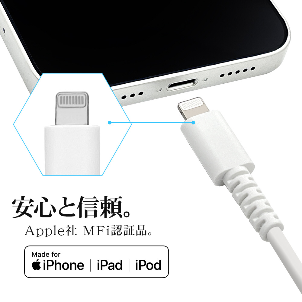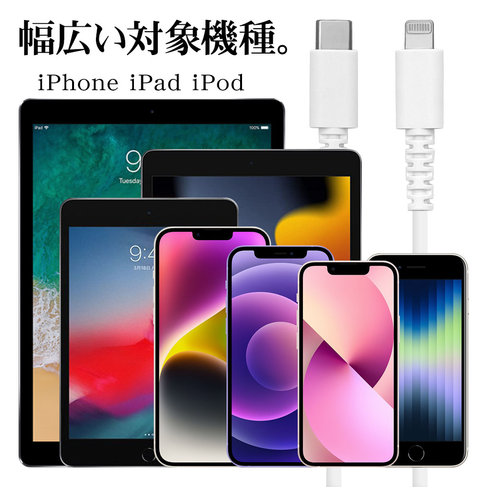 本製品はiPhone・iPod・iPadに対応した充電・通信ケーブル(USB Type-C to Lightning)です。